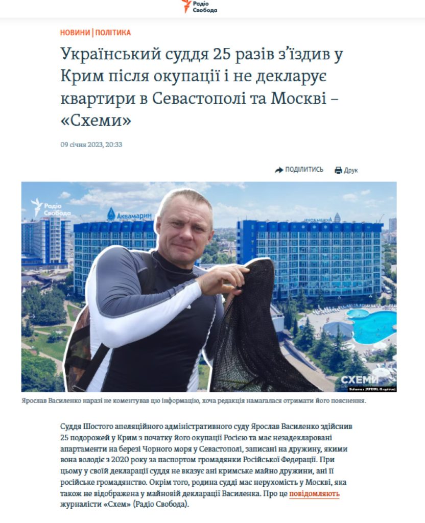 Среди судей засветился ярче других Вacиленко, тот, что с недвижимостью в Крыму, в Москве, и женой гражданкой рф (я в шоке, какие у нас до сих пор существуют судьи).